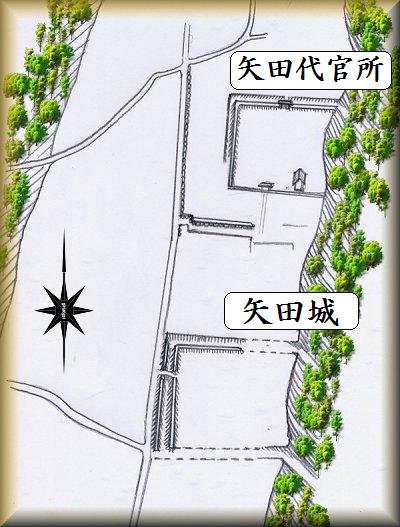 矢田城はこの位置、矢田代官所はこの位置にある。