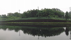 | 南側にある標柱。 | 北側の土塁と堀跡。 |