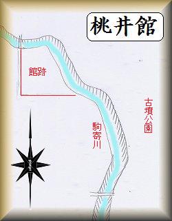 桃井館は駒寄川が蛇行する部分の先端部に築かれていた。川を挟んですぐ東側には古墳公園がある。