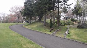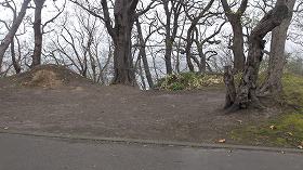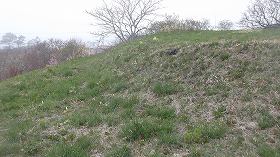 その先が広い芝生広場となっているが、これら公園の大半部分は城域外であり、チャシ本体は、そのさらに奥の先端部だけであったと思われる。ただ、1に行く途中の道路沿いに、緩やかな土塁状の高まりが南北に20mほど延びているのが見られる。これが遺構であるのかどうかは判別できなかった。
