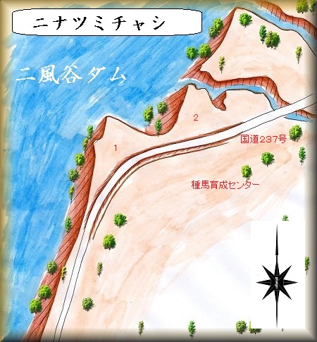 | 二風谷ダムから遠望するニナツミチャシ付近。 | 1の部分。堀は見られない。 |