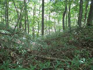 山稜部分には鞍部があり、これは幅広の堀状になっているというが、遺構なのかどうか分からない。