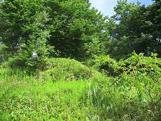 ただし、1の内部は草刈りがされているため、遠目にも内部の様子を見ることはできる。ざっと見たところ、堀はすでに埋められてしまっているようである。