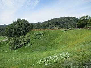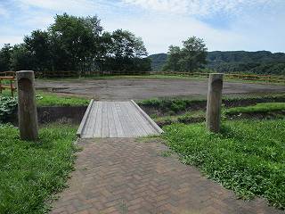 | ユオイチャシの堀跡に架けられた橋。 | チャシ西側の城塁。 |