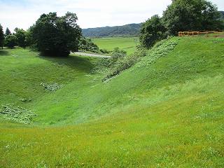 | 東側から見るユオイチャシの城塁。 | 東側部分は巨大な堀のような地形になっている。 |
