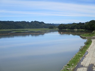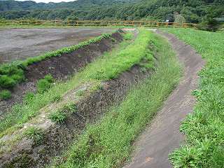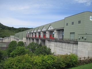 | 二重堀。表面をコンクリートで固めているのはいかがなものかと思う。 | 二風谷ダム。ダムにしてはちょっと変わった建造物である。 |