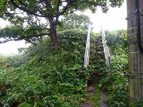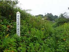 | 灯台に向かう道の途中に「カムイエカシ チャシ」と書かれた標柱が立っている。 | 東大に上がる階段。 |