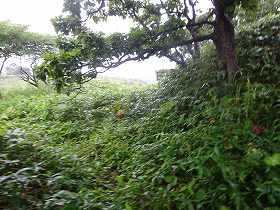 北側の国道からアヨロ浜に通じる未舗装の道路を進んで行くと、やがて海岸線に出る。この少し手前の所から灯台大に登って行く階段が付けられているので、それを登る。