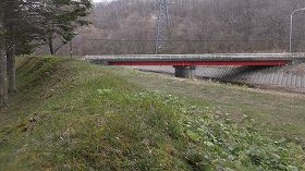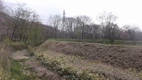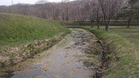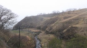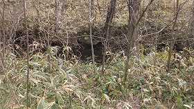 | 陣屋東側のウトカンベツ川。この川に面する部分にも土塁があるが、これも遺構なのだろうか。 | 北側の二番虎口。 |