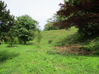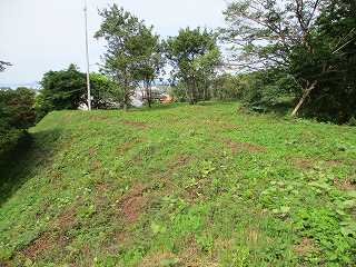 | フレナイチャシ南側の城塁。 | チャシ跡にある井戸状の大きな窪み。 |