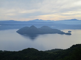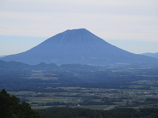 | 西側の山稜から見る洞爺湖。 | 同じく羊蹄山を遠望したところ。 |