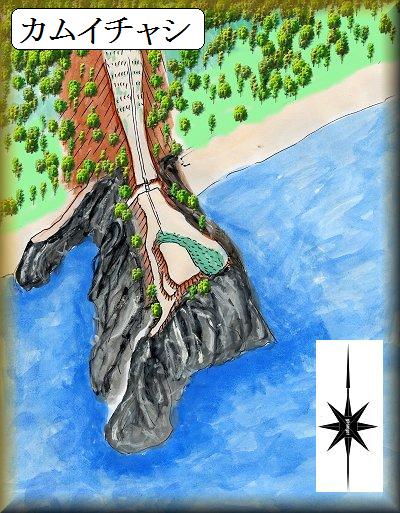 ちなみにgooglemapの地図では、この岬の西側の丘陵に「カムイチャシ史跡公園」の印を付けているが、実際には茶津岬がカムイチャシの跡である。