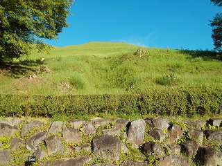 ガイダンス施設の前から見上げる。まるで山城である。竪堀状の窪みも見える。 | 北側から。 |