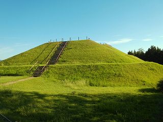 ガイダンス施設の所から見上げると、この古墳はまるで中世城郭のようにそびえて見えている。