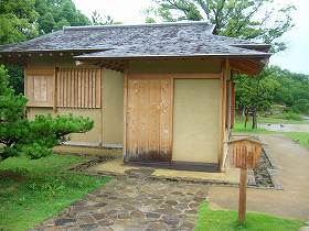 | 南側下の広い郭(明石公園)には茶室が再現されていた。 | 南側下の郭の中央部にある大手門の枡形。 |