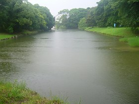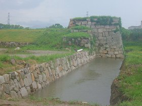 | 二の丸の櫓台。依然来た時にはこの辺は赤穂高校の敷地であったような気がする。 | 2の丸の堀。20mほどの幅がある。 |