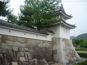 | 二の丸の庭園。復元工事中である。 | この日宿泊した民宿初音(赤穂市新町)の目の前には赤穂城の模擬櫓があった。模擬とはいえ本物そっくりである。 |