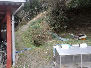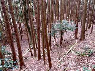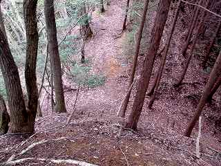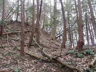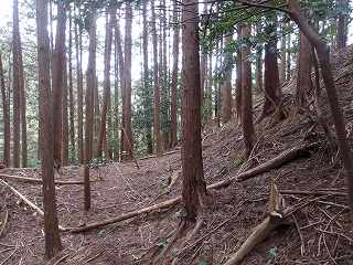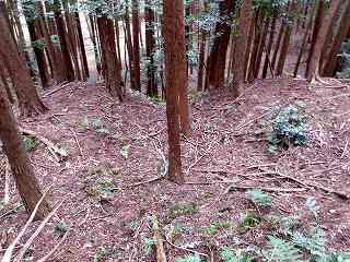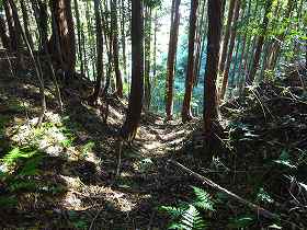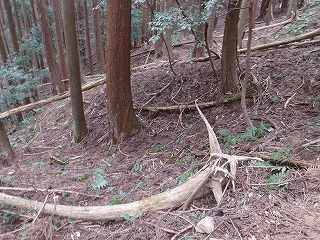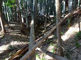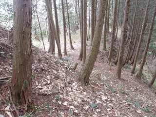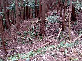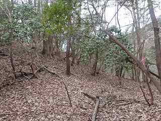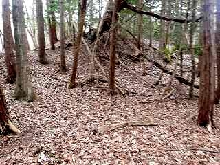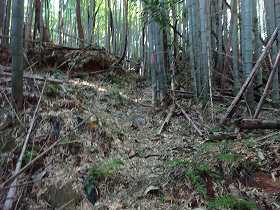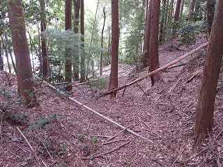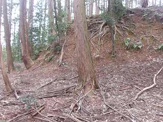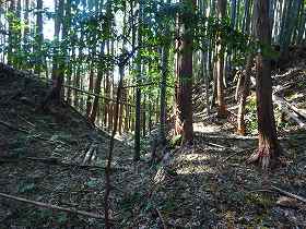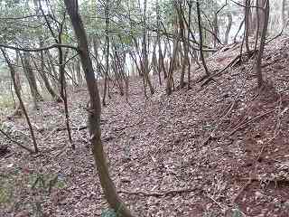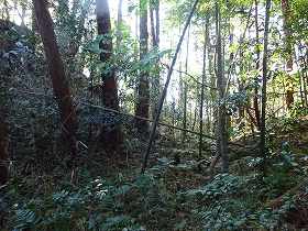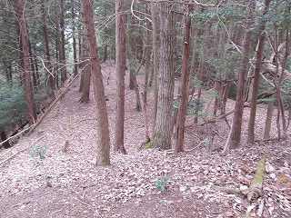 | この手前から城の方に入り込んで行く林道がある。 | 3郭下の虎口。 |