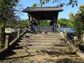 | 現存陣屋門を正面下から見たところ。 | 西側側面部の石垣。 |