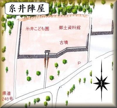 糸井陣屋は、京極高門によって築かれたもので、京極陣屋とも呼ばれる。寛文8年(1668)、豊岡藩主であった京極氏から2000石の分地を受けた高門は、この地に陣屋を営んだ。以後、陣屋は明治維新まで存続し、廃藩置県後は、小学校敷地となっていたが、現在では廃校となり、歴史館が建てられているというわけである。