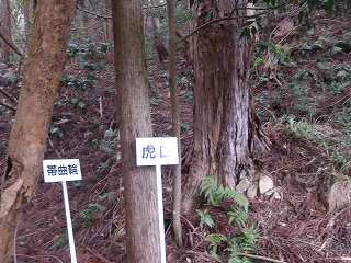 登り口の先には「虎口」「帯曲輪」などと書かれた案内が立てられているので、どこが入口なのかはすぐに分かる。