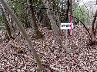 その先には鞍部と言ってもよさそうな天然の堀があり、西側に登った所が3郭である。3郭は切岸加工が鋭く施されておらず、天然地形に近い郭であったが、まずまずの面積はあり、ここにも「城主居住部」の案内が立てられていた。