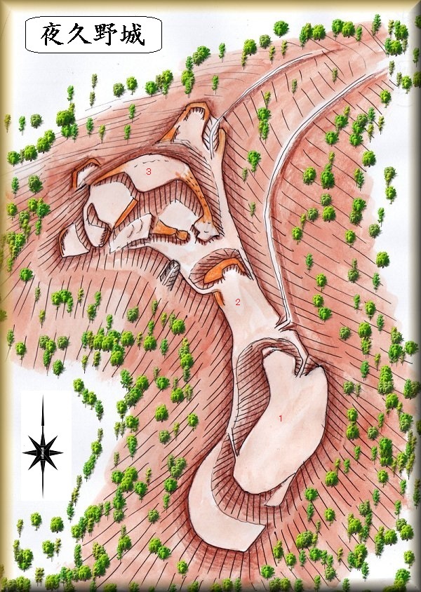 夜久野城は、このように大きく3つの郭によって構成された城郭である。