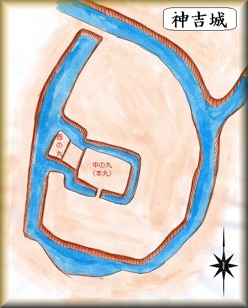 城主は神吉民部大輔頼定という人物で別所長治の一族として、神吉荘一万余石の領主であったが、織田信長の三木域攻めに際し、 その支域として千余騎の軍兵によって善戦したが、総天将信長の嫡子で秋田城主介信忠 のひきいる三万余騎の織田兵に攻められて天正六年七月十六日、遂に落域した.