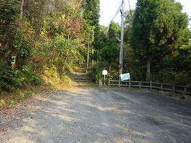 ところが、ここからきれいに舗装された車道がずっと続いている。車で城山の中腹まで行けるようないい道が付けられているのである。だが、この入口には車止めがしてあるので、車では進入できないようになってしまっている。そういうわけで、車道をずっと歩いていくことになるのだが、どうみても普通に運転できる道で、しかも終点にはけっこう広い駐車場まであった。どうして車止めをしているのか、その意味が不明である。