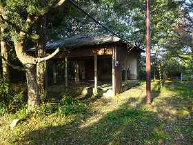 2の上の壇の北側下には、かつての神社の社務所かと思われる建物が1棟、ポツンと残されている。その脇の大きな窪みは、かつての池の跡であろうか。あるいは城内に庭園が存在していた可能性もある。