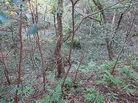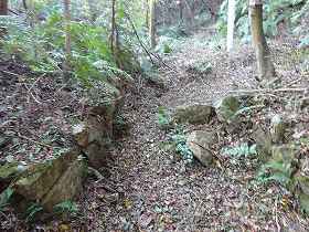 | 2郭への本来の虎口。石積みが見られる。 | 1郭虎口。 |