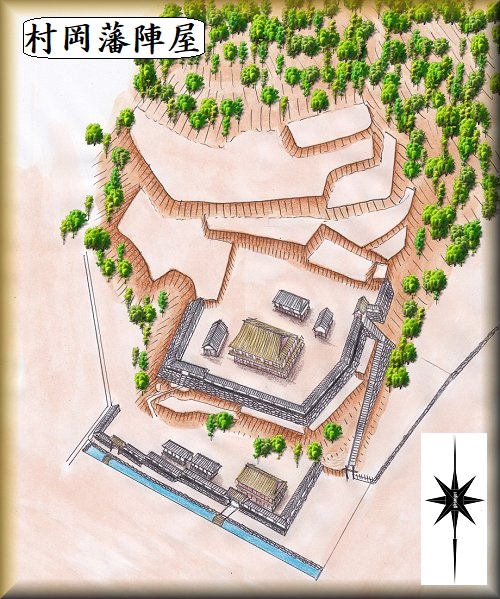 *広島の秋山さんに依頼されて、秋山さんから頂いた図と、山名氏資料館に掲載されていた明治元年の「村岡藩陣屋図」とを基にして描いた鳥瞰図。この城にはまだ訪れていない。