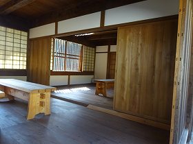 | 陣屋内部。内部にはな〜んにもない。 | 物見櫓を裏側から見たところ。かつては公民館として使用されていたらしい。 |