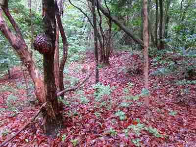 万昌寺の東側の脇から山中に入り込んで行く道があったので、それを進んで行く。その途中から山の上の方に入り込んで行く。