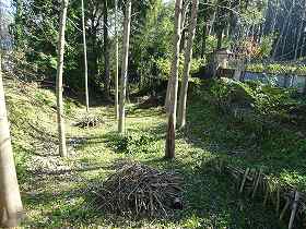 | 1郭の南端部は川に臨む断崖となっている。 | 1郭西側の腰曲輪。 |