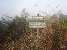 | 三ノ丸跡。倒木があちこちにある。 | 遂に雲海の上に出た! 真下に雲海が見えている。雲海は竹田城の専売特許ではない。山上は晴れているが、地上は霧の中なのであろう。 |