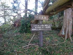 右衛門丸から登っていった次の壇が涼御殿、さらに三ノ丸と続いていく。三ノ丸には倒木がけっこうあった。最近の台風で木がなぎ倒されてしまったものであろうか。