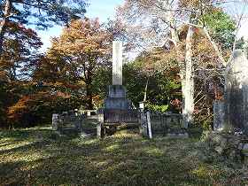 | 二ノ丸と本丸城塁。 | 本丸内部に建てられた波多野秀治を称える大きな顕彰碑。 |