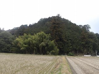 大上西ノ山城は、大上公民館の北側にそびえている比高40mほどの山稜に築かれていた。すぐ西側の下には大渕館がある。