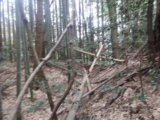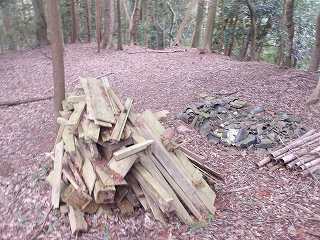 | 1郭先端下の堀切。 | 神社の廃材。 |