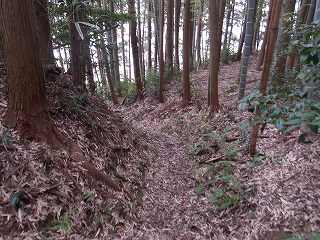 この城の最大の見どころは、南端下にある大堀切である。こちらは深さ10mほどもある巨大なもので、南側に小規模な堀切を置いて二重堀切を形成している。