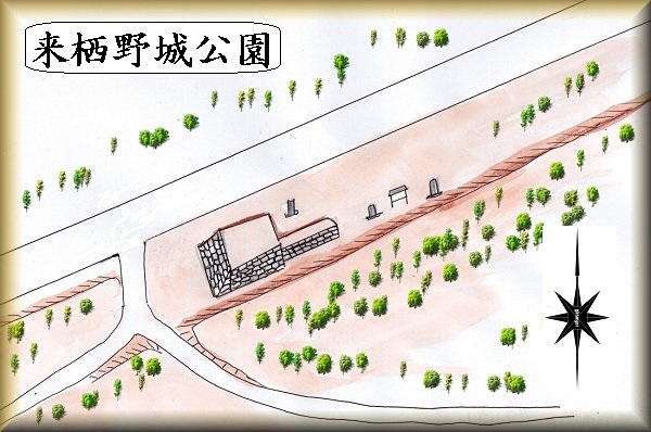 案内板を見てみると、そこには「来栖野城公園」と刻まれた石碑が建てられている。