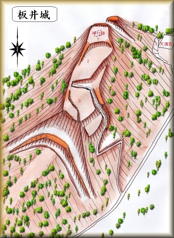というわけで今回は登城できていない。右の鳥瞰図は上記の書の図に基づいて作成してみたものである。