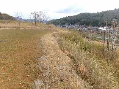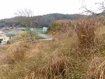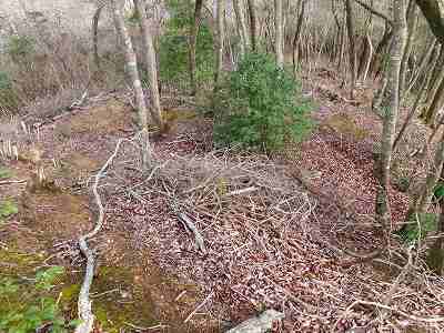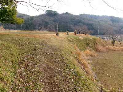 ここから北へ階段式に下がって三つの平坦地が造成され、その東側に 二mの土塁がある。