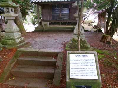 なお北西側の谷奥に字馬 場、北側斜面ににわり穴とよぶ深い穴(抜穴と伝承する) が残り、城域の広がりを想定させる。そのほか城跡の西 側の土塁上には城主福原氏を祀った福原社(通称こうべさん)が鎮座する。