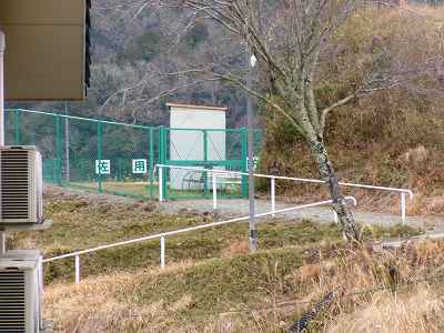 そして、この水堀の奥のやや高い所に馬場跡といわれている広場があり、また水堀の岸をなしている山の中腹に、「にわとり穴」とよばれている 穴がある。