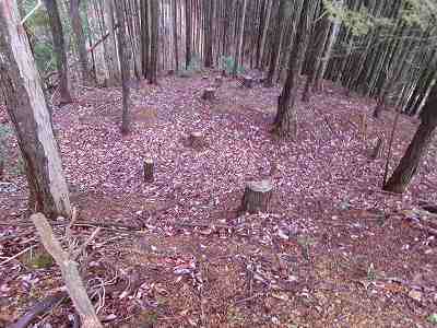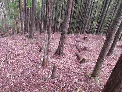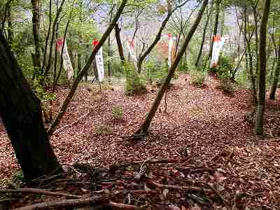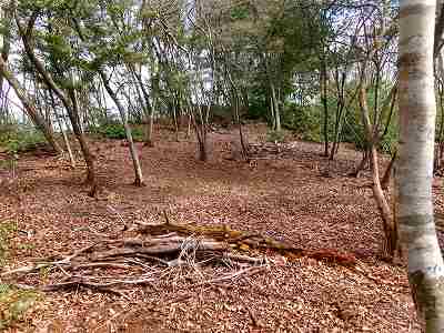 栗林として開拓さ れており、旧状を失っていると思われるが、縦二六m、横四六mの平坦地があり、階側に二六・九mにわたって土塁がある。