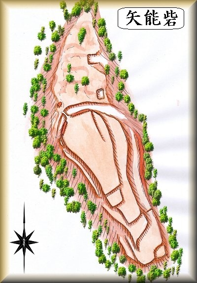 矢化集落西端の標高一五〇mの丘陵上に矢能の砦がある。