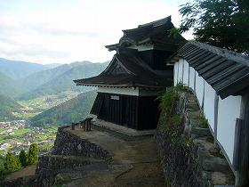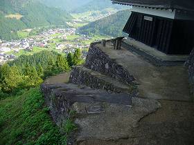 どうもこの城はこれだけでしかないらしい。城下の方から見ると、山上の櫓と石垣が見えていて、そこそこ城らしい威容を誇っているようだが、城としての実質はほとんどないに等しい。正面からのデモンストレーションだけを目的とした張りぼての城であったものだろうか。