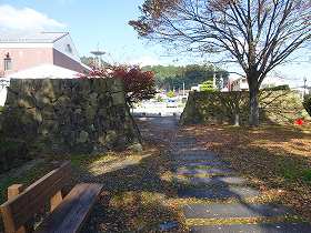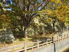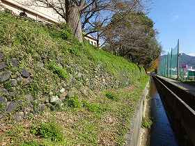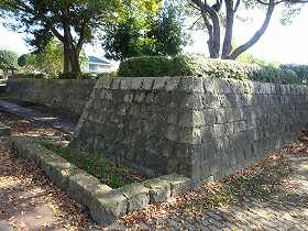 公園の北側にも石垣があるが、これも遺構と見てよいものだろうか。ただし、堀は埋められてしまっている。
